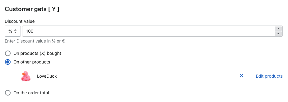 - Apply to all eligible products (Y) in cart : apply to all the product selected in ( Y ), this is the default option