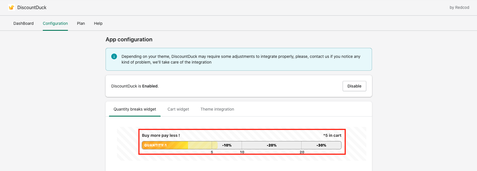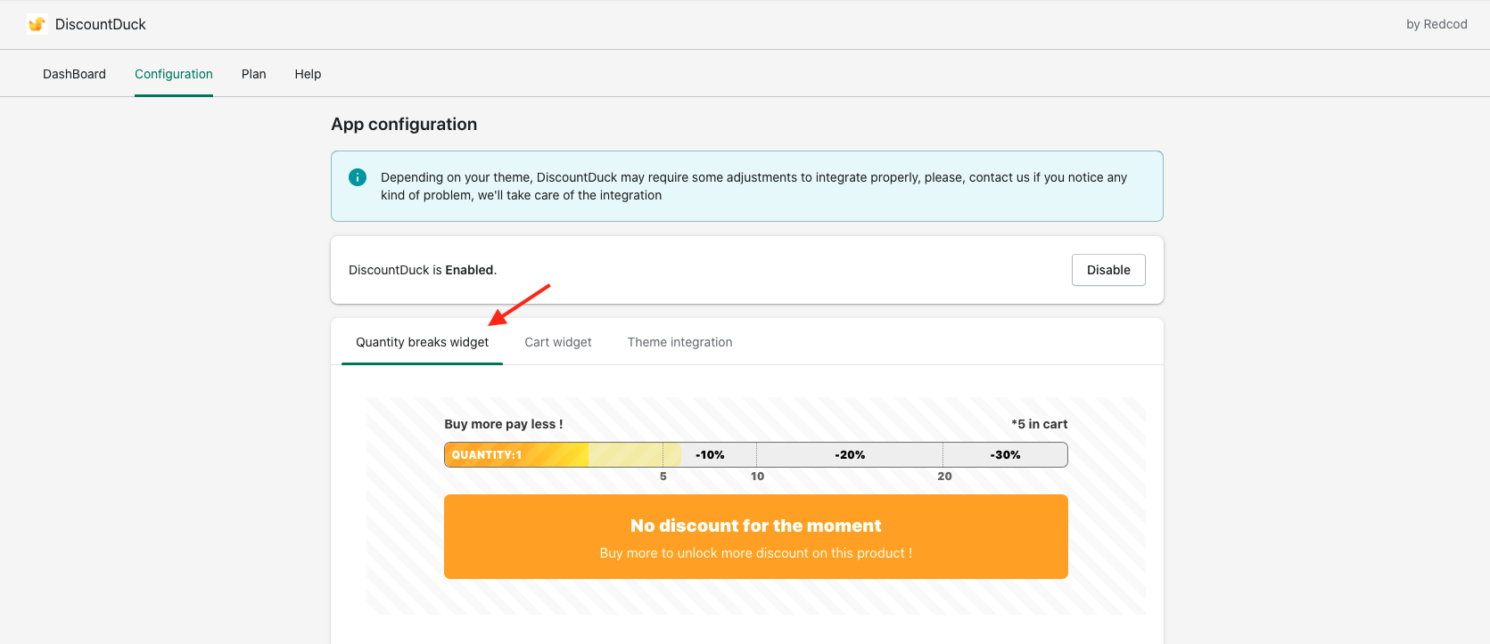 Almost everything is customizable in DiscountDuck widgets. to customize the quantity breaks widget, open the configuration page of DiscountDuck and select "Quantity breaks widget"