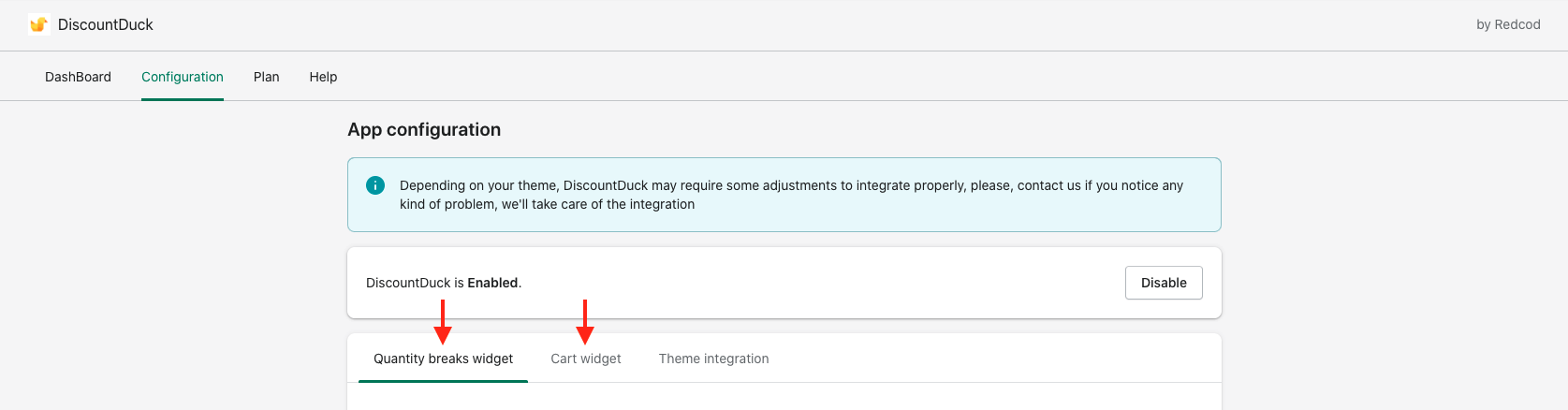 To translate the widgets, go to the configuration page and select the widget you want to translate ( Quantity breaks widget or cart widget ).